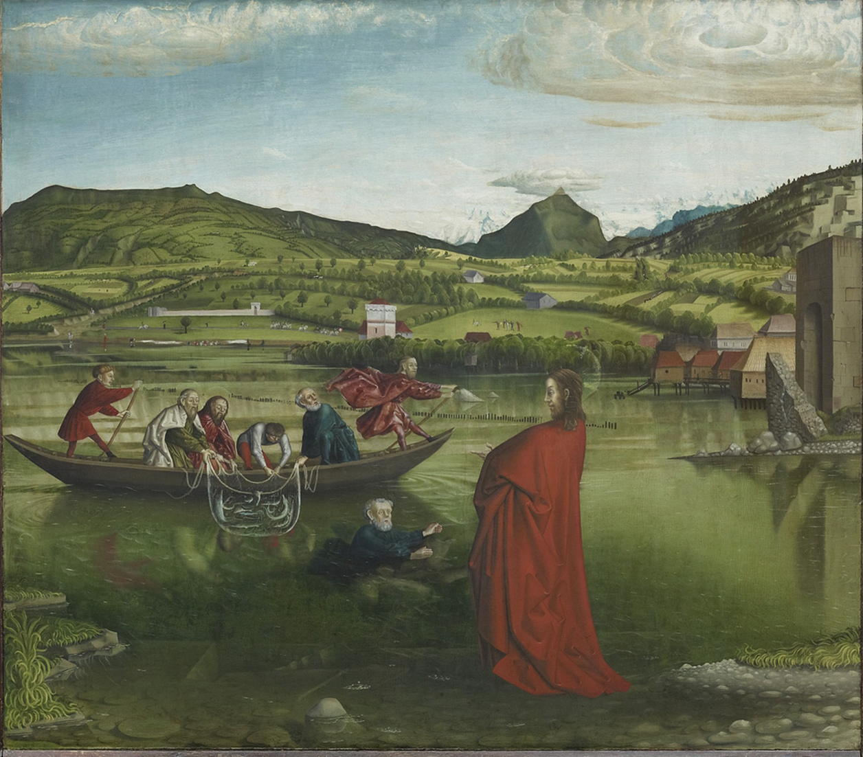 Descola mostly passes over the exceptionally well-known pictorial achievements of linear perspective in the Quattrocento in Italy, pausing to note Konrad Witz’s inaugural depiction of a real site in The Miraculous Draft of Fishes (1444):